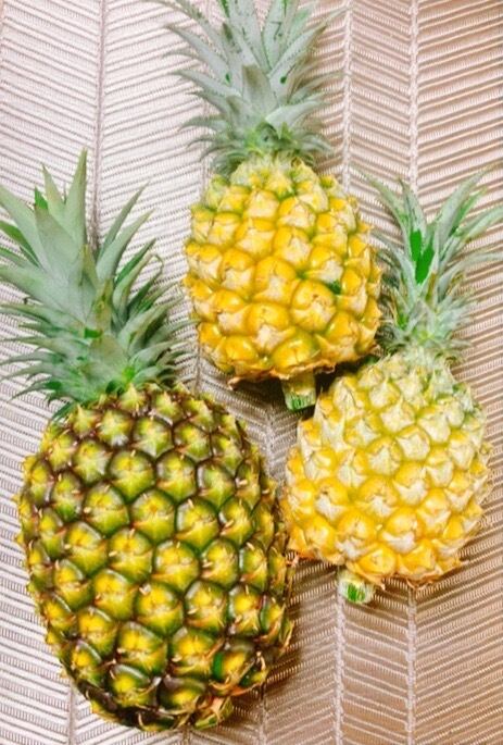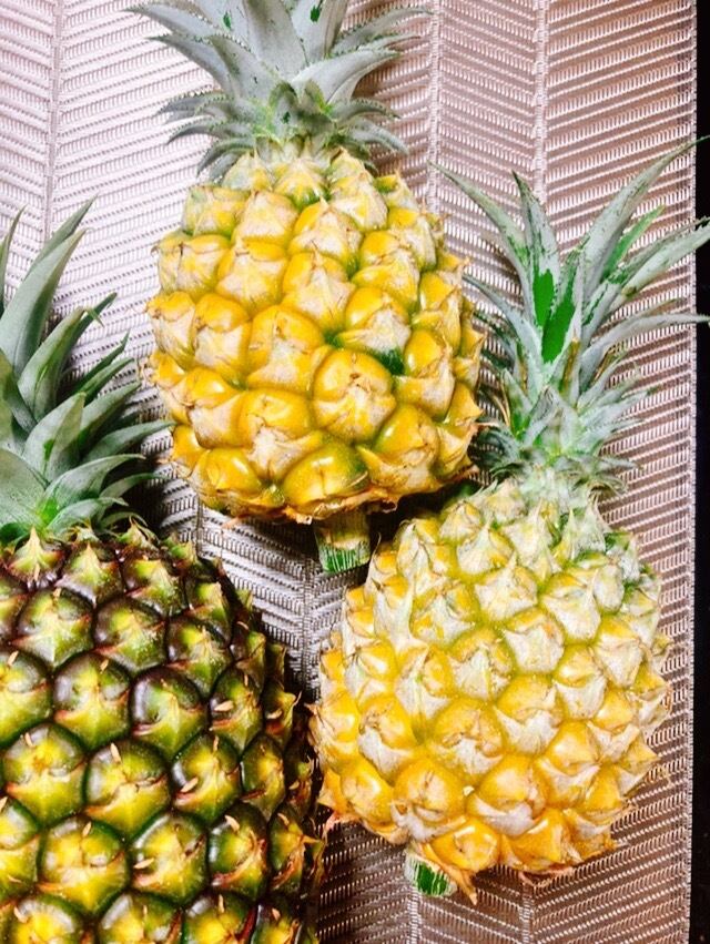 パインは黄色く変色し、香りが強くなりましたら食べごろの状態です。冷蔵庫で冷やしてお好みの大きさにカットしてお召し上がり下さいませ。